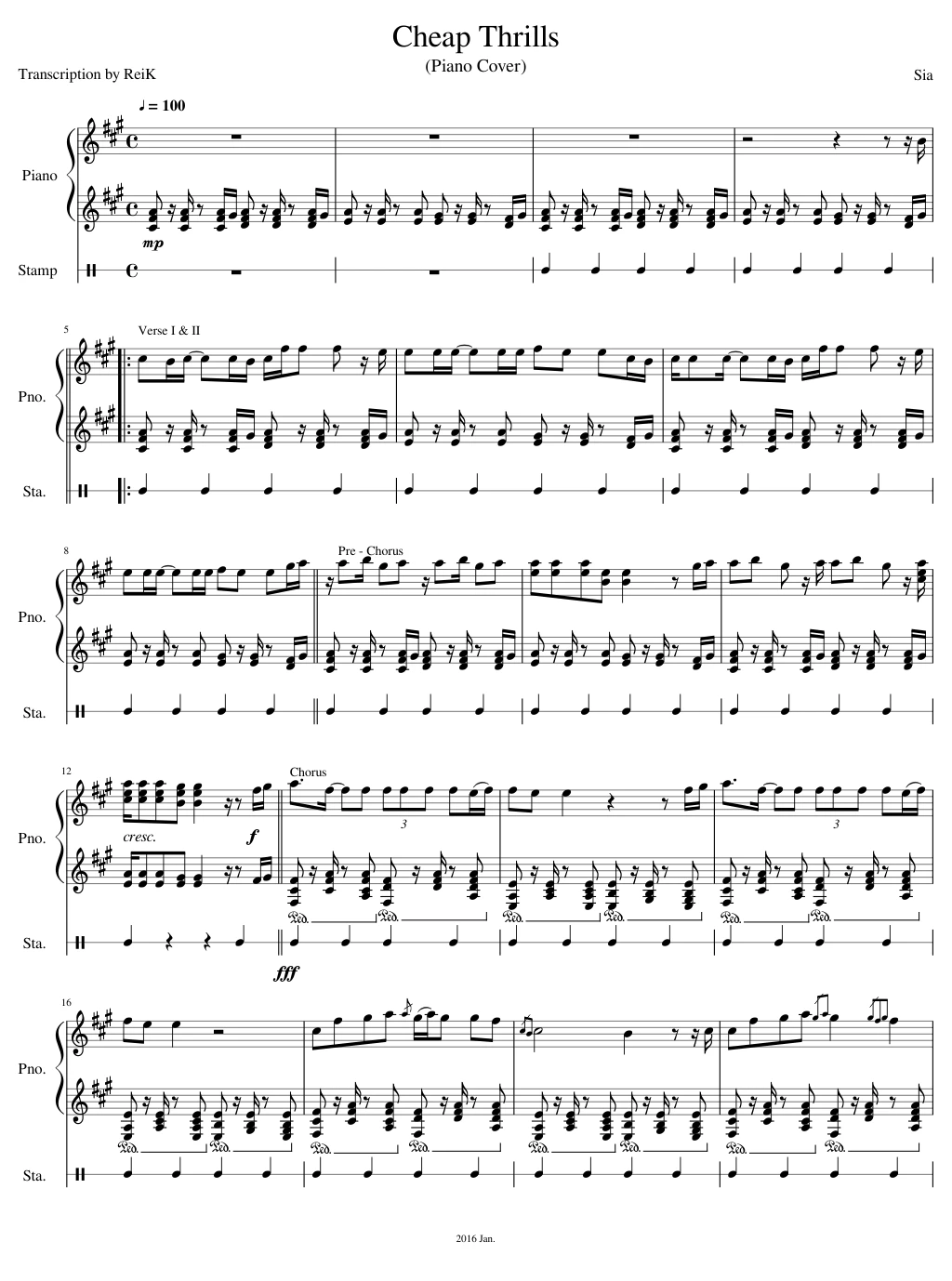 Cheap Thrills Sia Piano Cover Reik Sheet Music For